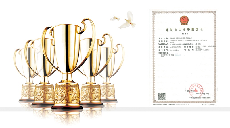 湖南省正陽(yáng)光電科技有限公司是一家從事亮化工程及大型燈光藝術(shù)的設(shè)計(jì)、制作、安裝和維護(hù)于一體的專(zhuān)業(yè)化公司。公司資質(zhì)齊全、管理嚴(yán)謹(jǐn)、技術(shù)先進(jìn)、實(shí)力雄厚,取得了城市及道路照明工程專(zhuān)業(yè)承包壹級(jí)資質(zhì)、照明工程設(shè)計(jì)專(zhuān)項(xiàng)甲級(jí)資質(zhì)、機(jī)電工程施工總承包貳級(jí)資質(zhì)、施工勞務(wù)等資質(zhì)、國(guó)家高新技術(shù)企業(yè)、國(guó)家“重質(zhì)量·守誠(chéng)信”示范企業(yè)。